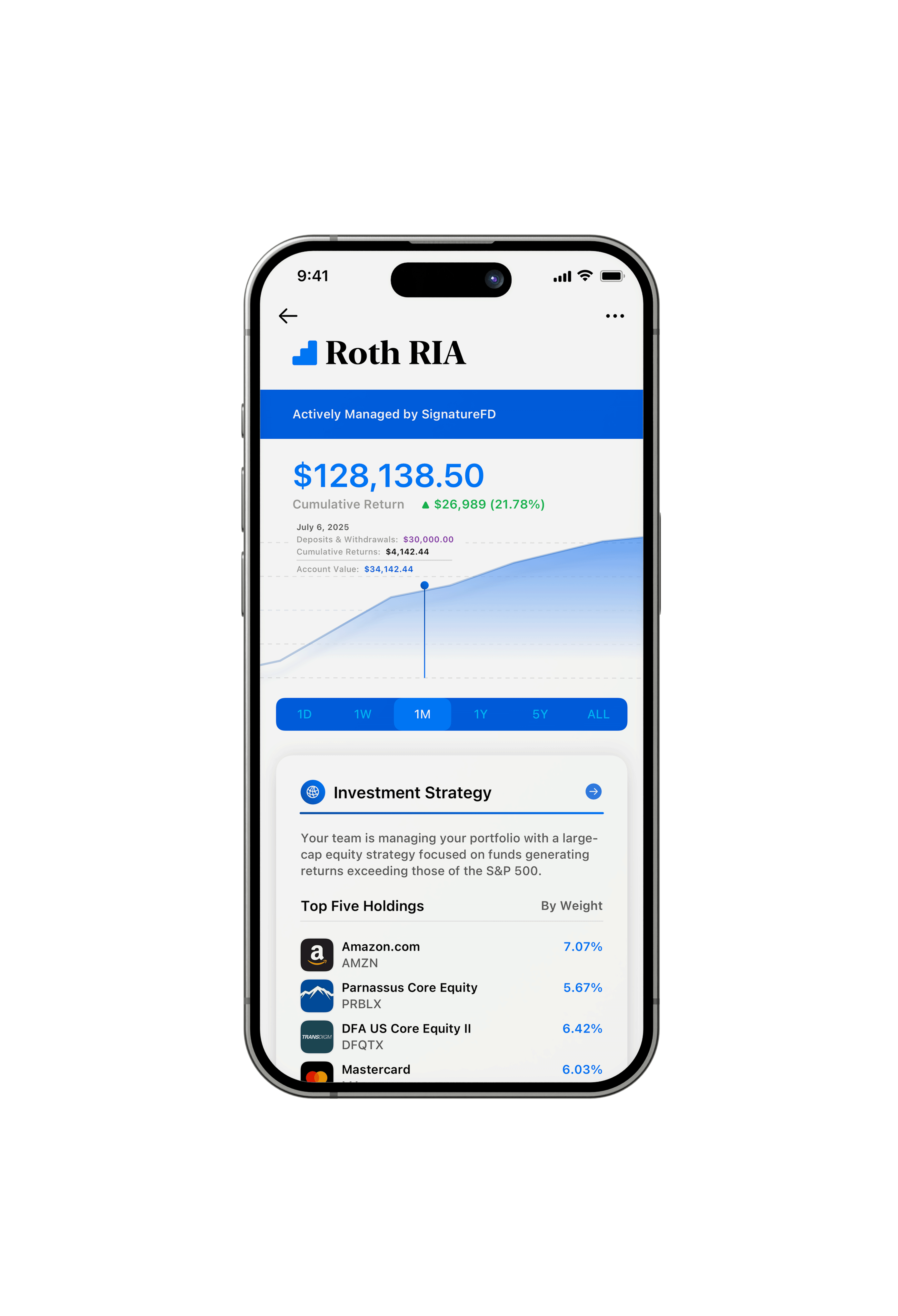 Our partner wealth firms are some of the nation’s most respected private wealth firms who specialize in delivering institutional-grade investment strategies. By partnering with Wing, they’re able to extend these strategies to clients with balances under $1 million—a level of access typically reserved for high-net-worth individuals. While the partner firms focus on actively managing your investments, Wing takes care of your overall financial guidance and planning through our fully digital platform. It’s a seamless relationship that combines the best of both worlds: top-tier professional asset management and an efficient, automated experience designed to help you grow your wealth with confidence.