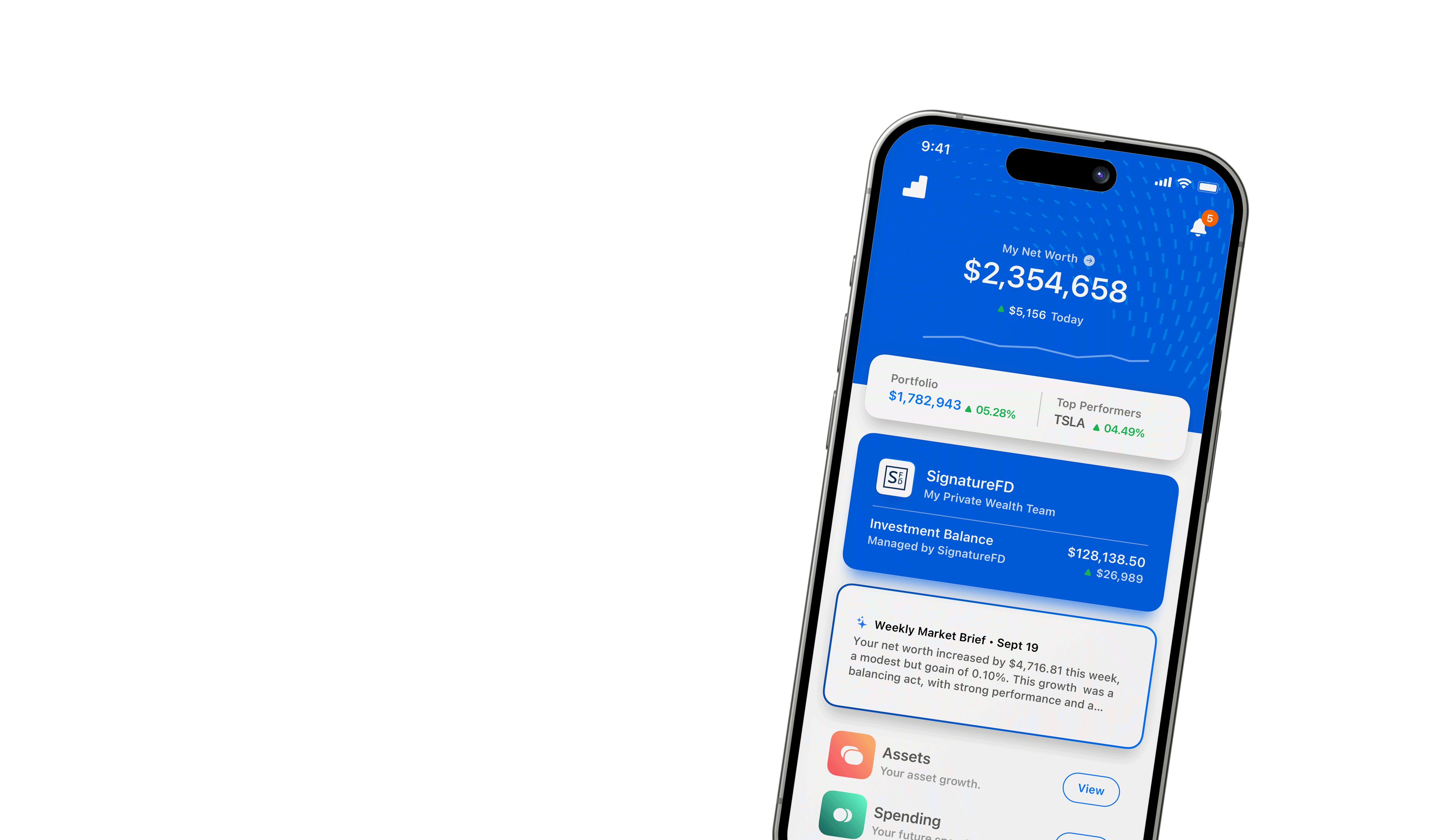 Wing also gives you a clear, real-time view of your financial picture, including net worth, cash flow, investments, and long-term projections. You’ll see how today’s decisions affect tomorrow’s outcomes, with institutional-grade planning tools that help turn complexity into clarity.