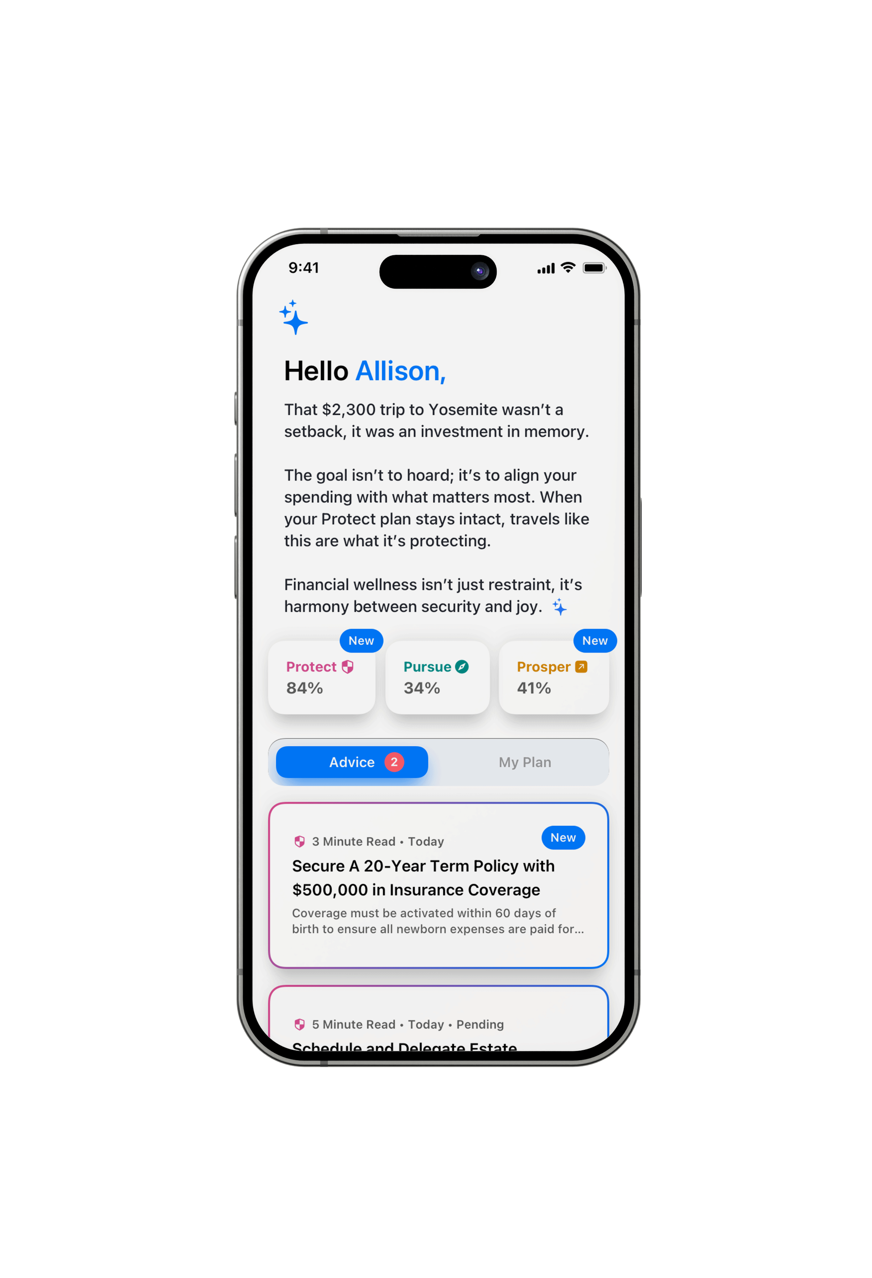 Absolutely. Personalization is core to how Wing works. Wing tailors guidance based on your guidance profile, goals, preferences, and life context - not just your accounts. Whether you’re navigating major decisions like buying a home, paying down debt, or planning for retirement, Wing frames guidance around your specific situation and priorities. As you move through different life stages, Wing continuously optimizes your plan. That means your guidance stays relevant as your goals shift, your finances grow, or new opportunities emerge - all without requiring you to constantly re-plan from scratch.